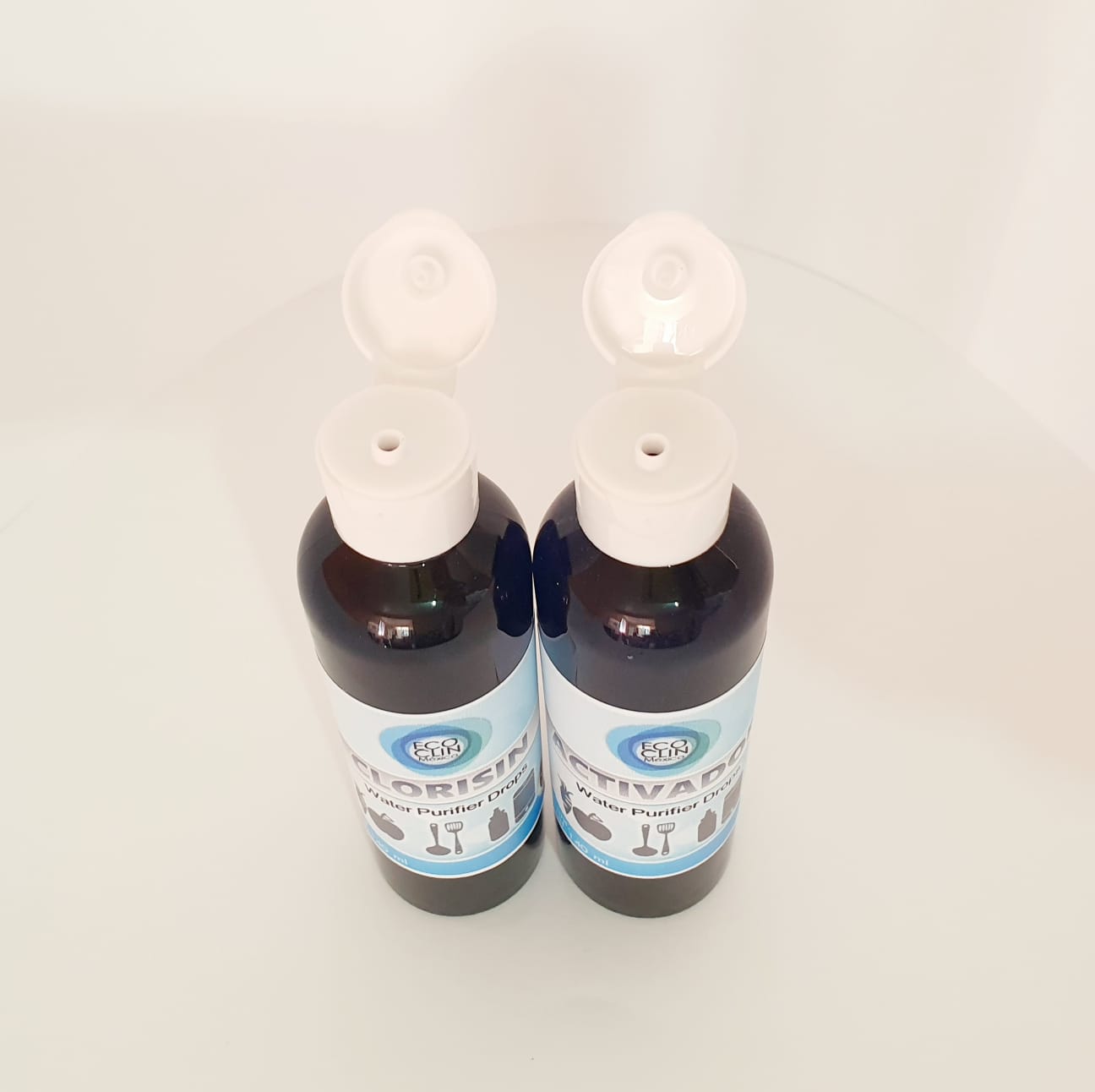 Para obtener la solución Dióxido de cloro mezcle en partes iguales 1 gota de Clorisin con 1 gota del Activador, espere 1 minuto y agregue agua según el uso deseado. La EPA determina que el uso de dióxido de cloro para mejorar la calidad del agua es seguro en las dosis adecuadas.